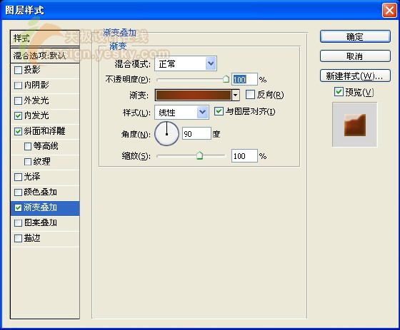 7.在“图层样式”对话框中按如图6所示设置“渐变叠加”样式的各选项。