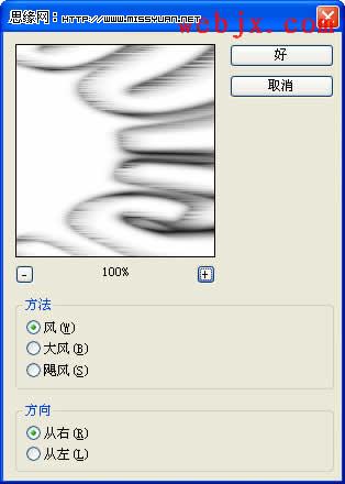 7、然后顺时针旋转画布90度。按Ctrl+I反相,然后执行风滤镜,设置如下。