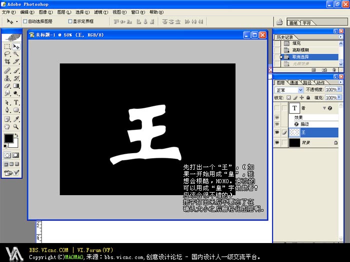 最终效果图 1、建立文档,背景填充为黑色,然后利用文字工具输入文字,并且按Ctrl+T调整合适大小。我这里