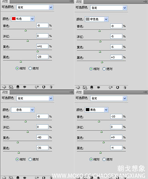 5、打开可选颜色面板,调色照片色彩,重点在黑色中添加红色渲染照片氛围。