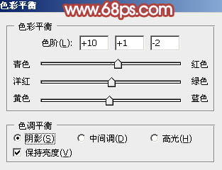 6、创建色彩平衡调整图层,对阴影,高光进行调整,参数设置如图17,18,效果如图19。这一步主要给图片暗部增加一点褐色。