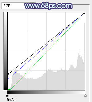3、创建曲线调整图层,对RGB、绿、蓝通道进行调整,参数设置如图4,效果如图5。这一步适当给图片暗部增加亮度,同时增加蓝色。
