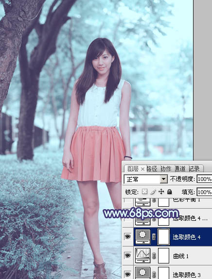 Photoshop打造甜美淡调青蓝色美女照片调色教程