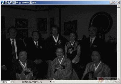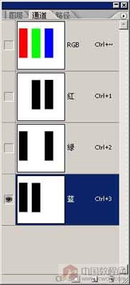 调整蓝色通道相当如重建蓝色通道,这就要使用绿通道和红通道了。(我试过在这种情况下保留兰通道有时会得到负面效果)可以看到蓝色通道和绿色通道“基本相同”,兰+绿=青,这样基本校正过来了偏色的图像。