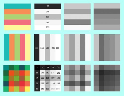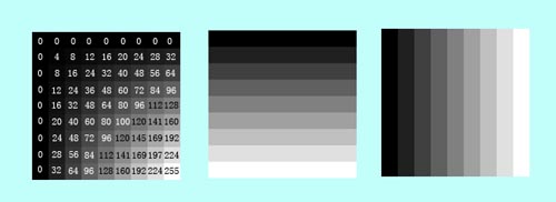 我曾经做过一些验证性的实验,请用Photoshop打开下面的图片,用吸管工具查查灰阶值,算一算,验证一下,你就会相信“计算公式”是正确的了。