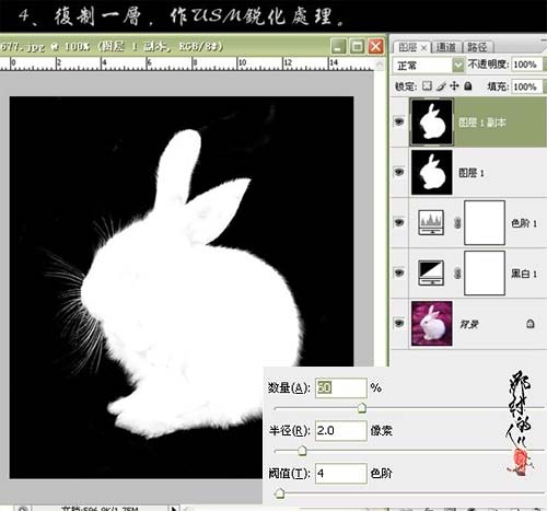 巧用Photoshop CS3黑白命令抠出可爱的白色小兔子