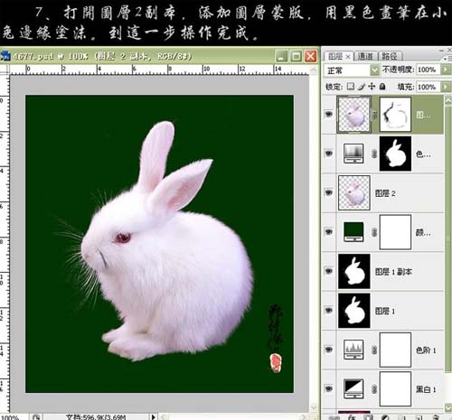 7、打开图层2副本,添加图层蒙版,用黑色画笔在小兔边缘涂抹,到这一步操作完成。