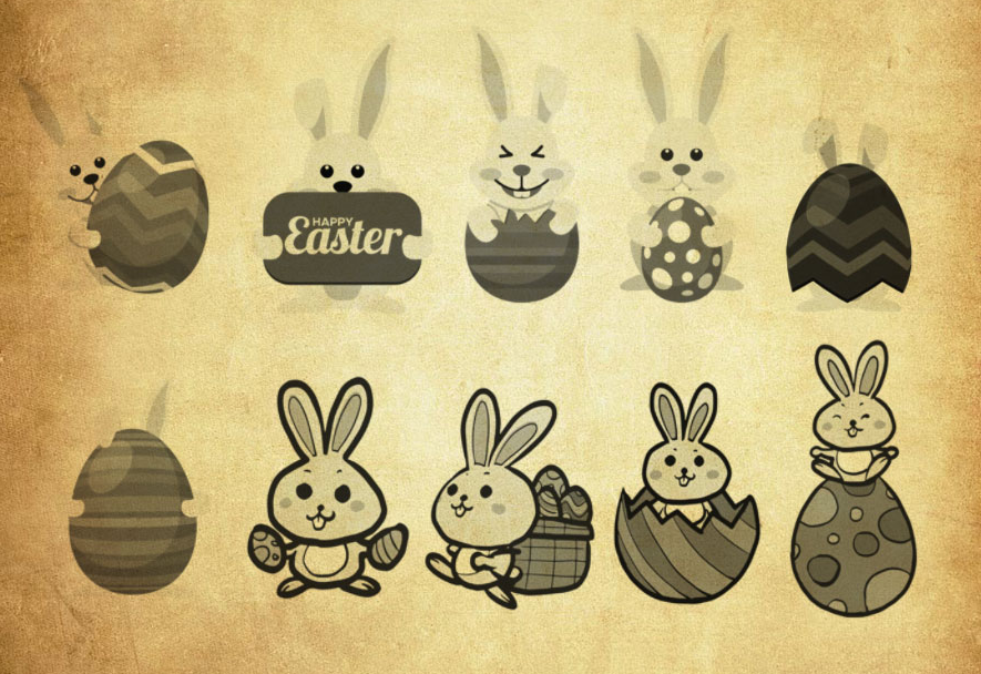 卡通兔子和彩蛋PS笔刷,卡通笔刷,兔子笔刷,彩蛋笔刷,PS笔刷