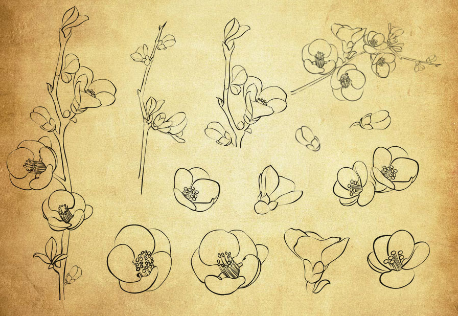手绘樱花和桃花PS笔刷,樱花笔刷,手绘樱花笔刷,桃花笔刷,笔刷PS笔刷