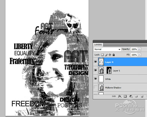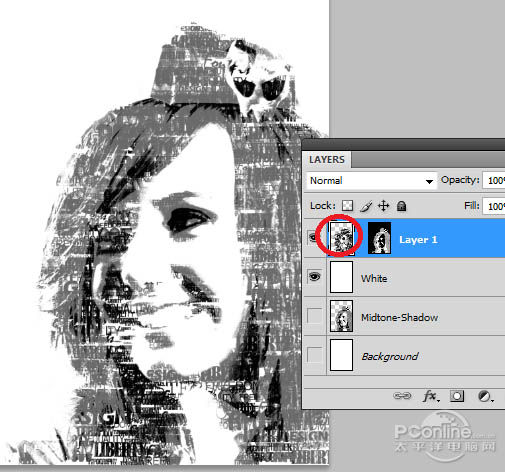 26、点击文字笔刷图层的缩略图,你就可以看到一个文字印刷效果的肖像。