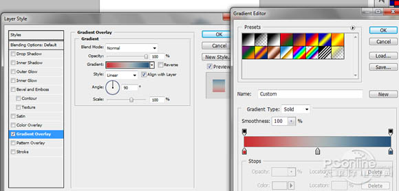 28、下面就要为人物肖像上色啦!首先双击文字印刷图层,在图层样式中勾选渐变叠加,将渐变颜色设置为3-5种你喜欢的颜色,也可以如下图选择。设置如下图所示。