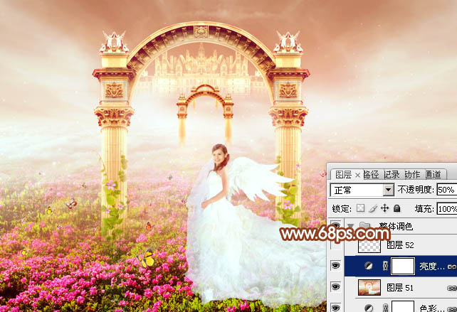 34、创建亮度/对比度调整图层,适当增加对比度,参数设置如图,确定后把图层不透明度改为:50%,效果如图。