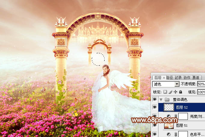 35、新建一个图层,混合模式改为“滤色”,不透明度改为:50%,用画笔把人物头部位置涂上一些高光,效果如下图。