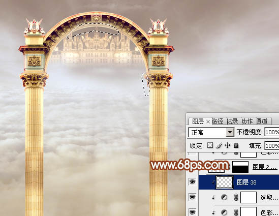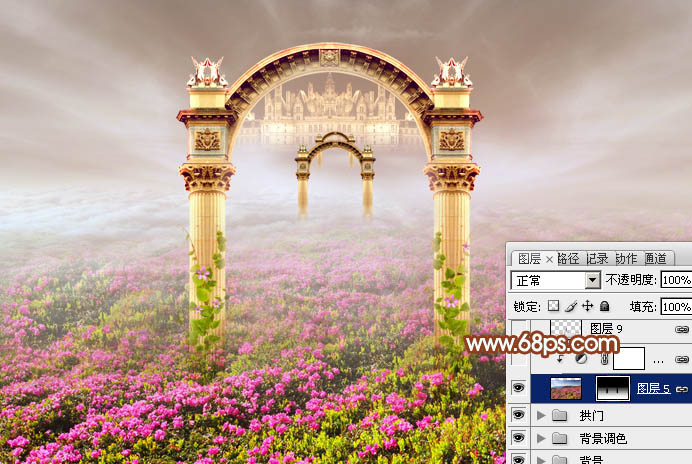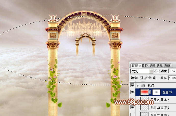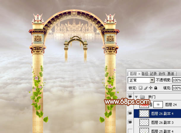 20、打开藤蔓及花朵素材,给拱门上面增加一些藤蔓。