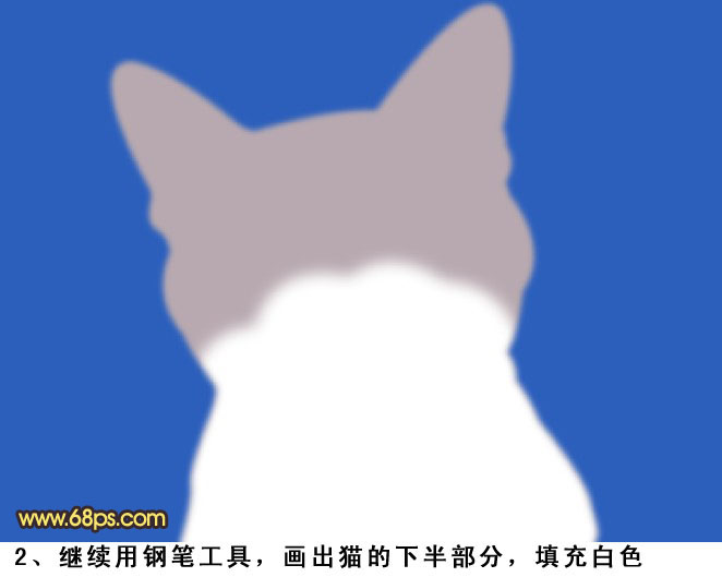 2、继续用钢笔工具,勾出猫的下半部分,填充白色。