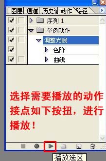 5、然后随便打开一张图片,选择动作面板里面新建的动作,再点播放按钮即可。