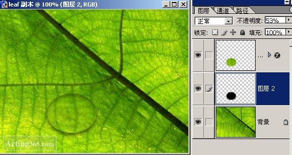 Photoshop制作绿叶上的水滴露珠效果图片
