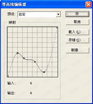 14.下来来做爪箱的底托,先在背景层的上面新建一个图层,用钢笔工具钩如(图20)所示的底托轮廓,并填充为米灰色,双击此图层,钩选斜面浮雕效果,并取消浮雕效果中的全局光设置,将阴影角度设置为165度,高度为28,并将光泽等高线作如(图21)般调整,将等高线作如(图22)般调整,光泽就选用默认的等高线。完成后如(图23)。