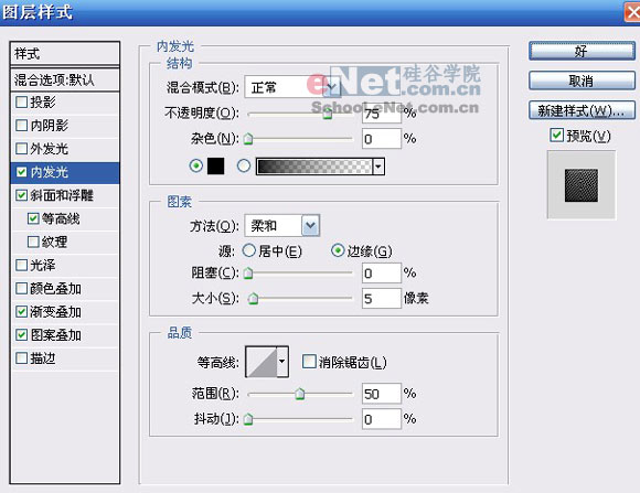 8.为了精确的定位喇叭的位置最好使用标尺工具(快截键是CTRL+R),建立一个新的图层设置前景色为#929292,这个实际上与开头的第一个步骤基本一样,不同的只是它仅仅小些而已。作出选择区以后在用刚设置的前景色进行填充,然后按CTRL+D取消选择。然后双击该图层打开图层样式设定设置分别如下图所示例(和前面的样式设置一样,这里列出来只是查找方便些)