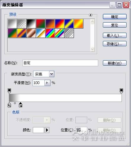 5. 设前景色为浅灰色,背景色白色,点径向渐变,由选区中心向外拉。(图6)