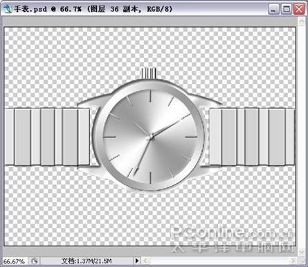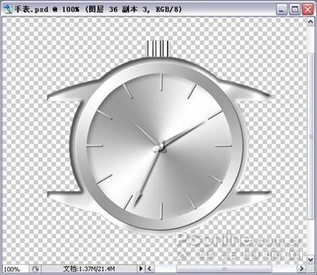 26. 参照第一个圆盘的方法做个小圆,也可以复制第一个圆盘,缩小就可以了。最后合并秒针的图层,(图31)
