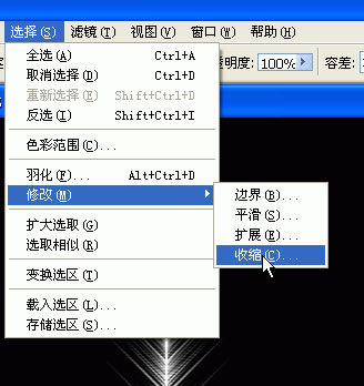 11、给小椭圆填充白色,然后点击“选择/修改/收缩” 设收缩量为1像素。