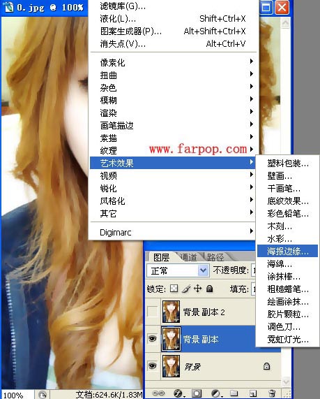 5、选择菜单栏中的滤镜-->艺术效果-->海报边缘.。