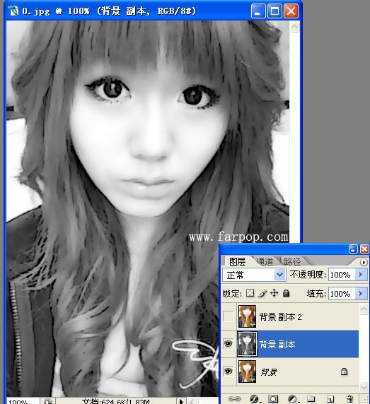 7、将背景副本图层去色 ,快捷键 Shift+Ctrl+U 。