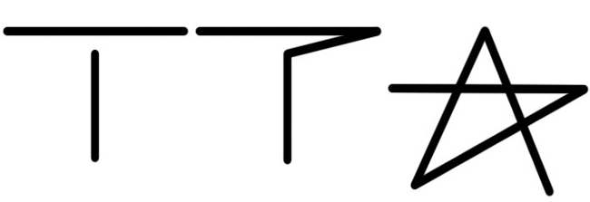 现在我们需要画一个T字样的图形,如下左图,该怎样画才可以保持直线呢?