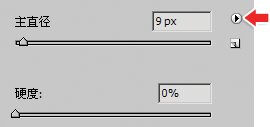 可以把设定好的笔刷直径和硬度储存起来,这样在以后再次使用的时候就不需要进行重新设定。现在我们随便设定一个主直径和硬度,然后在画笔预设窗口中点击新建按钮 (下左图绿色圆圈处)。
