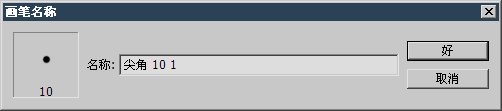 也可以点击新建按钮上方的 按钮后选择“新画笔预设”,将出现一个储存对话框,默认会将直径和硬度作为名称,硬度小于50%时称为柔角,大等于50%时称为尖角。也可以自己输入想要的名称。如下右图。储存后的笔刷将位于预设列表的最后。