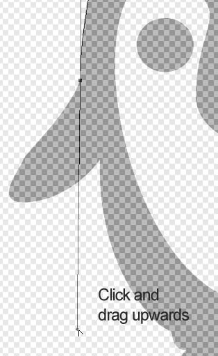 现在往下拖动鼠标你将注意到线条将会弯曲。拖动并释放鼠标按钮并当您的线条轮廓适合头部边缘的轮廓时。