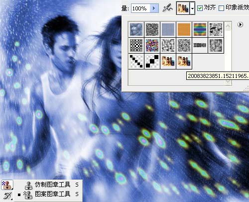 10、创建新图层,选择图案图章工具,并选择之前定义的图案。