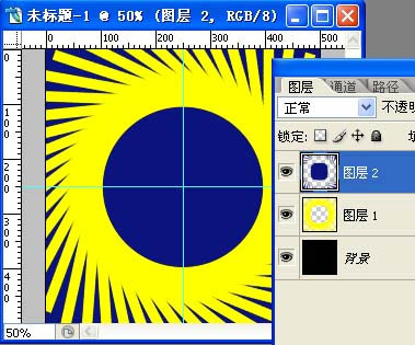 2、在背景图层填充黑色。在画布横纵向分别拉参考线到画布中间位置。