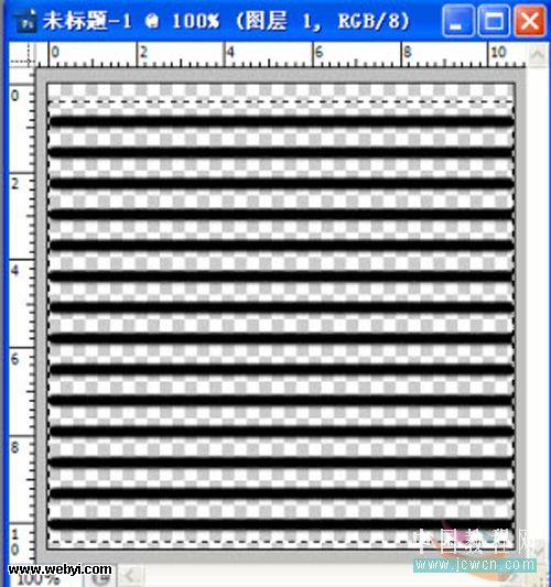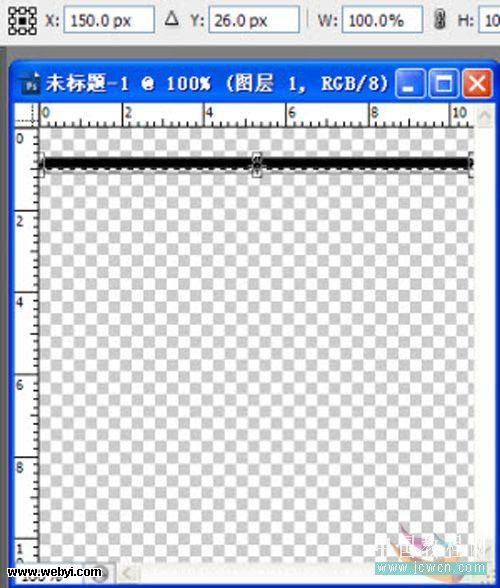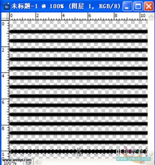 2、前景色设定为黑色,调整画笔大小,按住【Shift】键,在图层上端画出一条横线(见2-1图);选取横线,按【Ctrl+T】键,将横线适当下移,按【Enter】键确定(见2-2图);按住【Ctrl+Shift+Alt】键,连续点按【T】键,将图层复制满为止(见2-3图)。