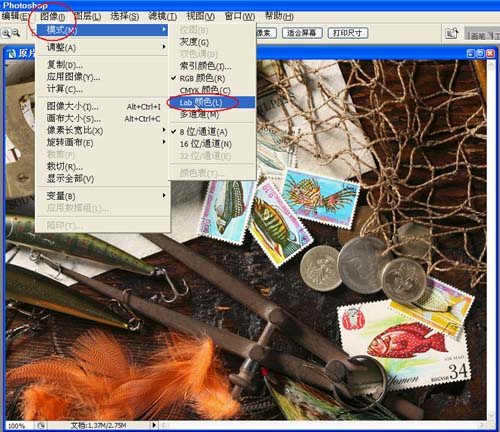 第二步: 点击菜单“图像-模式-Lab颜色”,将图像的RGB模式转为Lab模式