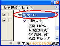 3、要把图像增大到海报大小需要很多遍,因此最好把上述操作过程定义成一个动作。每执行一次动作,图像增大10%。大概要执行这样的动作10到15遍。