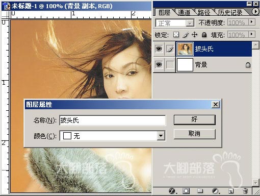 步骤一、复制该图片至副本层,改名为披头氏,并将背景层填白色(也许你会奇怪,为什么要多这一步?这是我个人的习惯,总喜欢把要处理的图片在一个新图层上)。