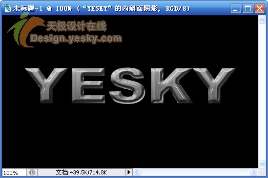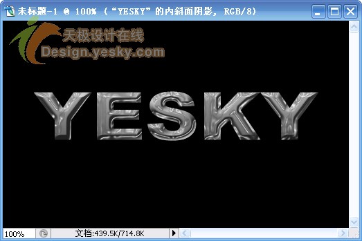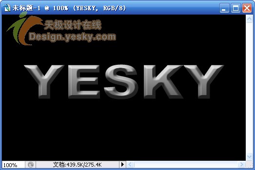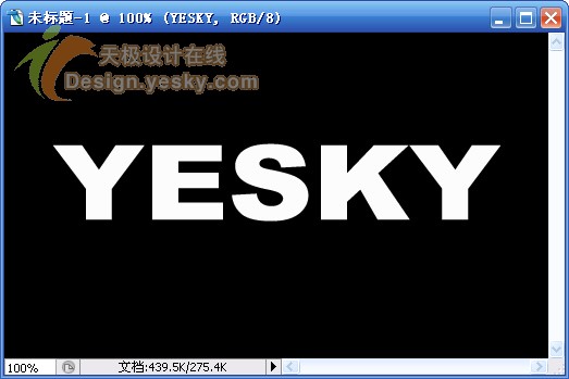 1.新建一文档,大小自定,背景设置为黑色,输入文字“YESKY”,设置字体为较粗的字体,例如这里使用的是“Arial Black”,文字的颜色设置为白色,如图1所示。