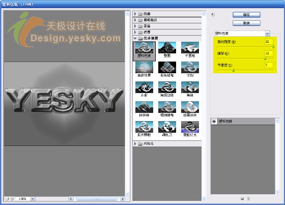 5.选中合并后的图层,选择“滤镜>艺术效果>塑料包装”,按图6所示设置各选项。