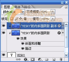4.选中图层调板中最上面的3个图层,即由图层样式得来的图层,按快捷键Ctrl+E合并图层。