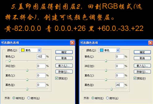 5、新建一个图层,盖印图层得到图层2,选择菜单:图像 > 模式 > RGB颜色,选择不合拼。确定后创建可选颜色调整图层,参数设置如下图。
