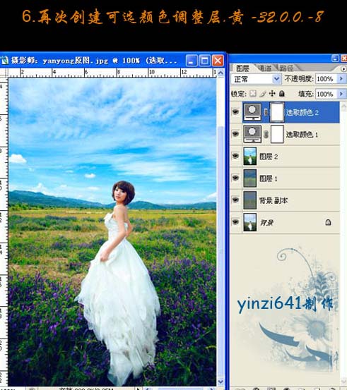 6、再创建可选颜色调整图层,参数及效果如下图。