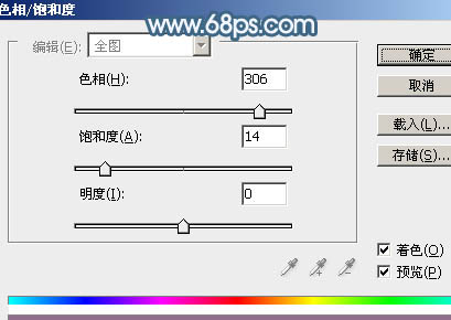 8、创建色相/饱和度调整图层,先勾选“着色”选项,然后设置参数,如图17。确定后按Ctrl + Alt + G 创建剪贴蒙版,再把图层不透明度改为:80%,效果如图18。