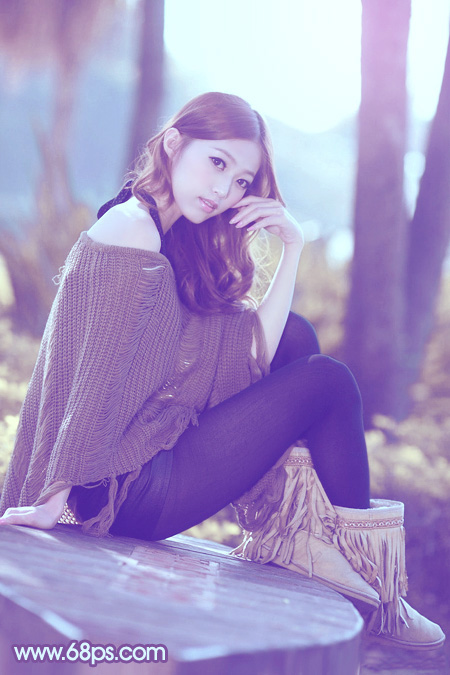 Photoshop打造柔和冷色效果的树林中美女照片调色教程