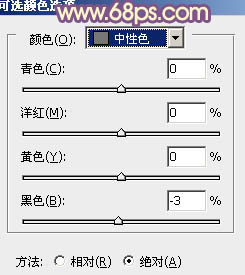 3、创建可选颜色调整图层,对黄,中性色进行调整,参数设置如图10,11,效果如图12。这一步给图片增加暖色。