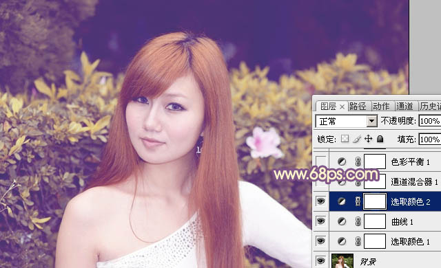 Photoshop打造甜美暖色效果的绿篱边美女照片调色教程