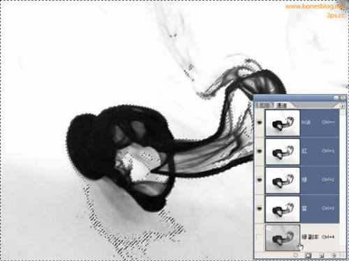 10、这远远还没到达我们要的效果,那怎么办呢?回到通道调板中,我们之前不是复制过一个绿色的通道么?按住Ctrl键,单击这个绿色通道副本的缩略图,载入这个通道的选区。
