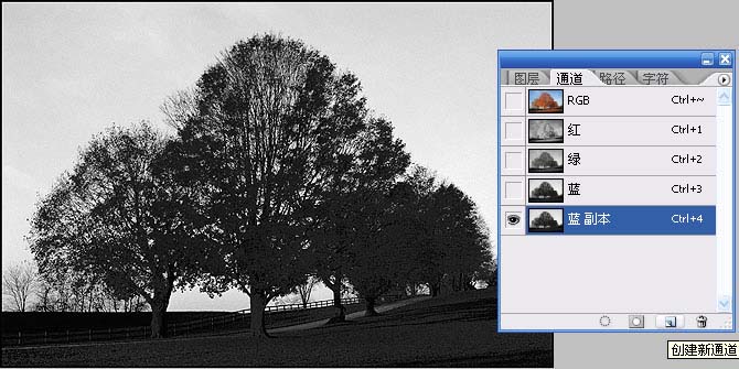 3、把蓝色通道拖拉到创建新通道的按钮,复制蓝色通道;