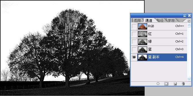 本教程用应通道结合蒙版的运用,扣出繁密的树放背景,几步就能轻松的扣完成,来看看下的制作过程吧。
